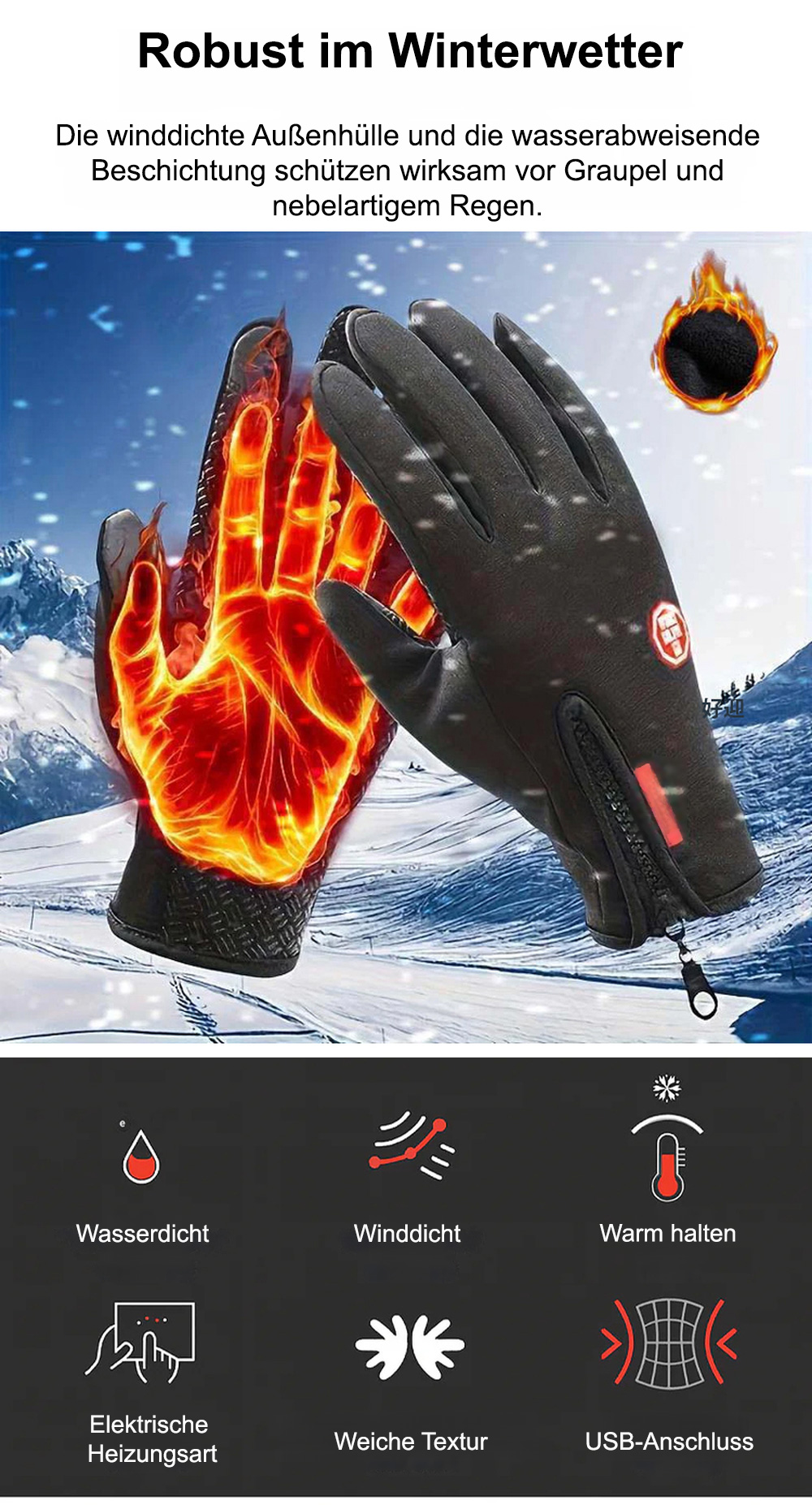 Elektrisch beheizte warme Handschuhe für Damen und Herren